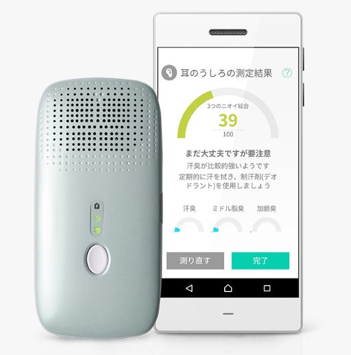 スマホアプリと連携して、自分の体臭の種類と強さを目で見て確認することができる、世界で初めてのニオイ見える化チェッカーです。NHK、テレビ朝日、テレビ東京、朝日新聞、日本経済新聞、雑誌『Safari』、雑誌『Tarzan』、米経済紙ウォール・ストリート・ジャーナルなど、国内外のさまざまなメディアにも取り上げられています。